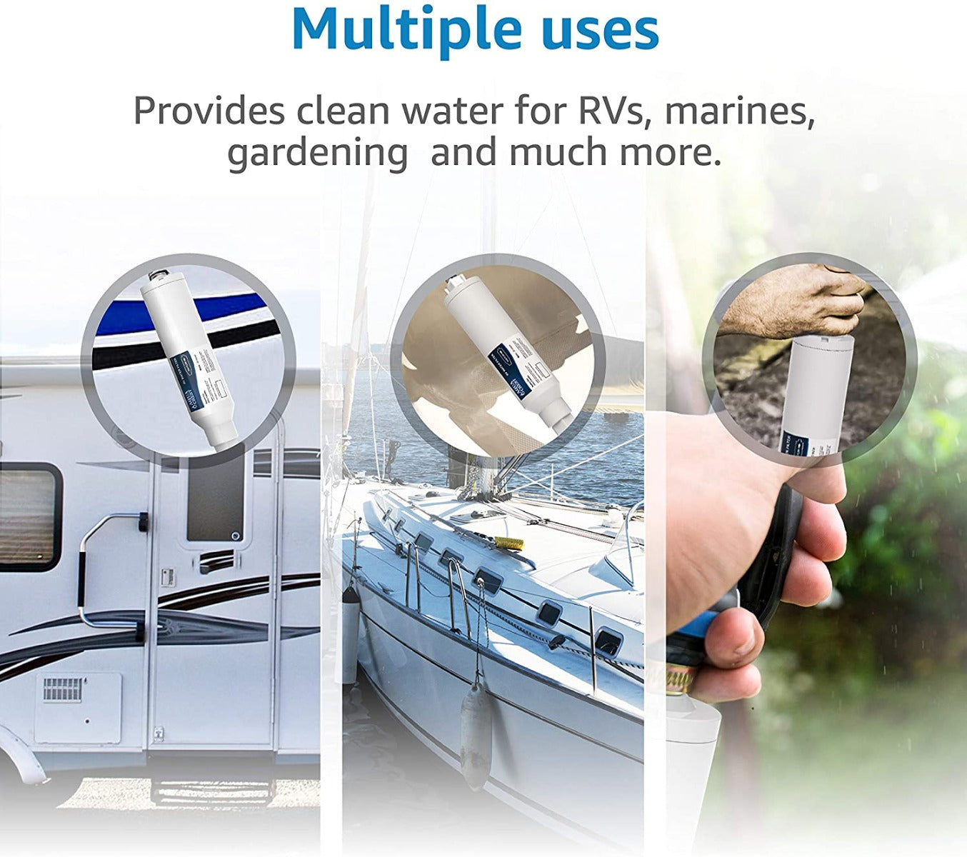 High-capacity inline RV water filter performs for up to three months, which will be based on water quality.